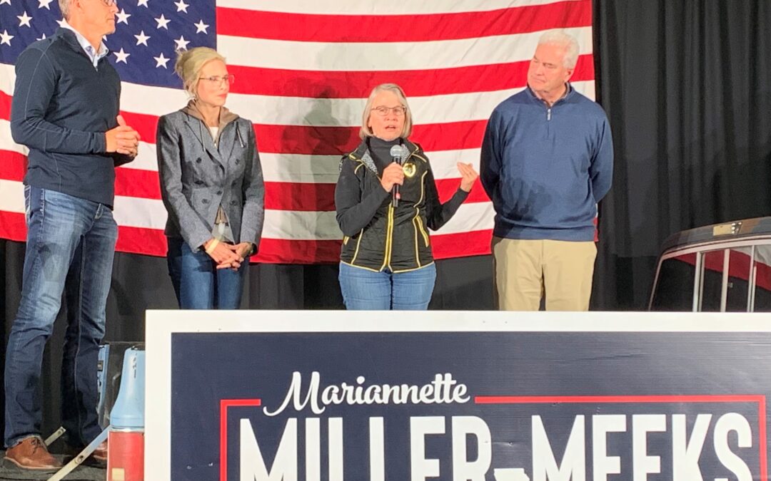 Miller-Meeks won in 2020 by just six votes. Last year, her margin of victory was 800 votes. Miller-Meeks told the crowd at her fundraiser that Democrats have already spent $2.8 million campaigning against her this year. “But we’re still standing. We’re still going and we are never going to give up. We never back down. I’m like the defensive line of the Iowa Hawkeyes,” Miller-Meeks said, to cheers. “Don’t come at me. Don’t after my family. Don’t come after my district.”