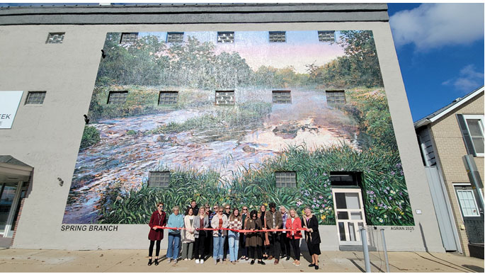 The landscape mural spans three stories on the south side of Honey Creek Furniture in downtown Manchester. Stephanie Fangman says the mural that was funded by Manchester Vitality Endowment and a state grant, has gotten good reviews. “I think just from the response we’ve gotten with this mural, I think it’s definitely more than artwork. We’ve seen people of all ages, all genders, all you know, all types that have found something interesting in the mural,” she says. Iowa City artist Thomas Agran spent five days painting the nature scene inspired by a visit to Spring Branch Creek in Delaware County.