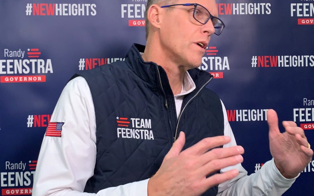 Randy Feenstra of Hull, one of the Republicans who’s running for governor, spoke to several precincts in the Des Moines area — including 16 precincts meeting together in a West Des Moines school’s cafeteria. Feenstra told reporters “hundreds” of volunteers spoke on his behalf at other caucuses around the state. “This is the time the Republican Party gets together, talks about policy and talks about how we are going to make sure that we keep this state red,” Feenstra said. “…This is the grassroots. These are the people who door knock, put out the signs and everything like that.”