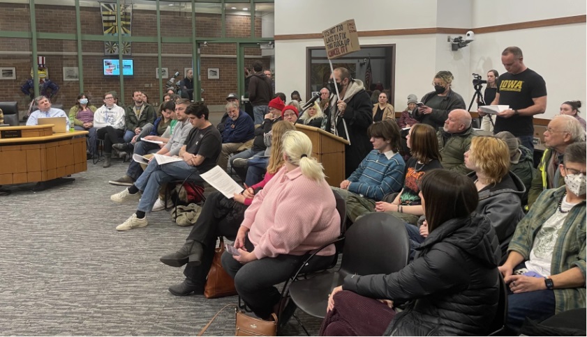 Coralville resident Dan Wohlers spoke during a public comment period. “By choosing to move away from the Flock system tonight, you are showing that you’ve truly heard us,” Wohlers says. “Throughout this process, we’ve discussed the complexities of this technology, the concerns over data privacy, the importance of strict policy guardrails and the need for local control over our residents’ information.”