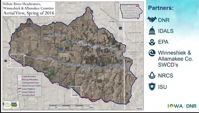 “The Yellow River Headwaters are just over 26,000 acres in Winneshiek and Allamakee. After the confluence, Yellow River becomes Iowa’s largest cold water trout stream, an important river trail and fishery resource for that region. It is also a tributary for the Upper Mississippi River,” Haes says.